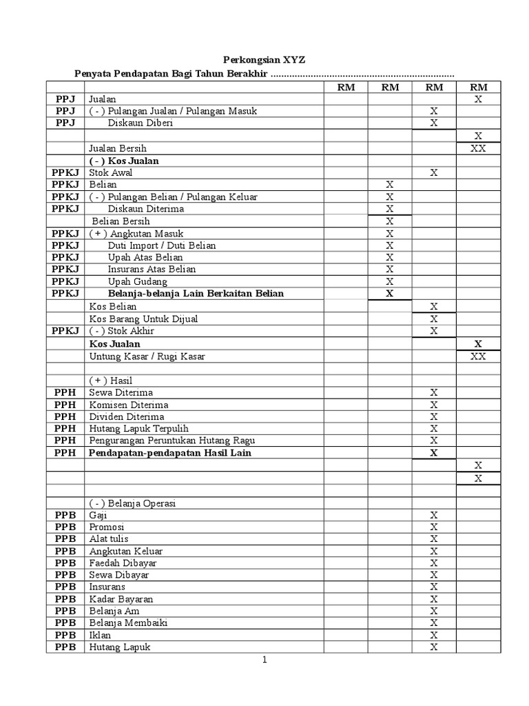 format penyata pendapatan perkongsian